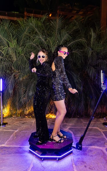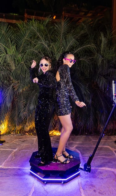 Plataforma 360° – Experiência interativa e moderna com opções para 4 ou 6 pessoas. Gera vídeos em tempo real com música e logotipo personalizados, perfeitos para deixar seu evento ainda mais divertido e inesquecível.